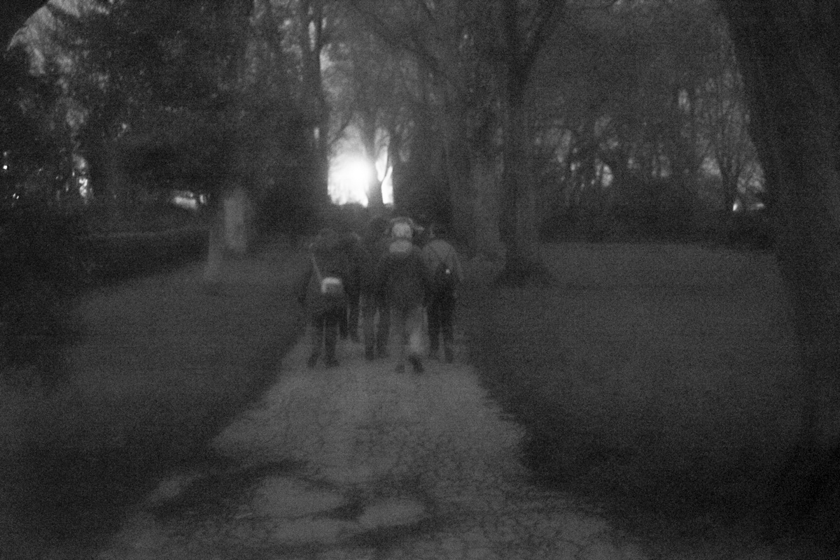 We met at Bournville Station and quickly made our way to the Cadbury Women’s Recreation Ground, a beautiful hidden gem in the day but a bit spooky by night. After spreading out to contemplate the darkness in silence for five minutes we moved on to Cotteridge Park, pausing for a chat at the glacial boulders.