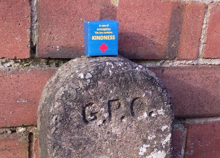 Andrew Howe is an interdisciplinary artist based in Shrewsbury who uses walking and mapping to explore how people interact with places. He sent a very long email detailing lots of exciting projects and works, far too many to mention here, so we recommend ploughing through his website. A good starting point would be his blog post on the Acts of Resistance project involving small boxes left in public spaces.