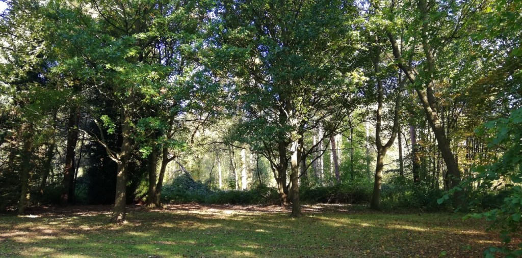 Woodpeckers knock. Jays swoop silently overhead. Blackbirds, robins, chiffchaff and wrens trill and chatter and warble. A muddy path winds beneath orange barked pines, around dark hollies, between scrawny birches riddled with plates of fungi. In autumn toadstools burst from stumps and mossy logs; push through leafmould burnished by beech leaves.