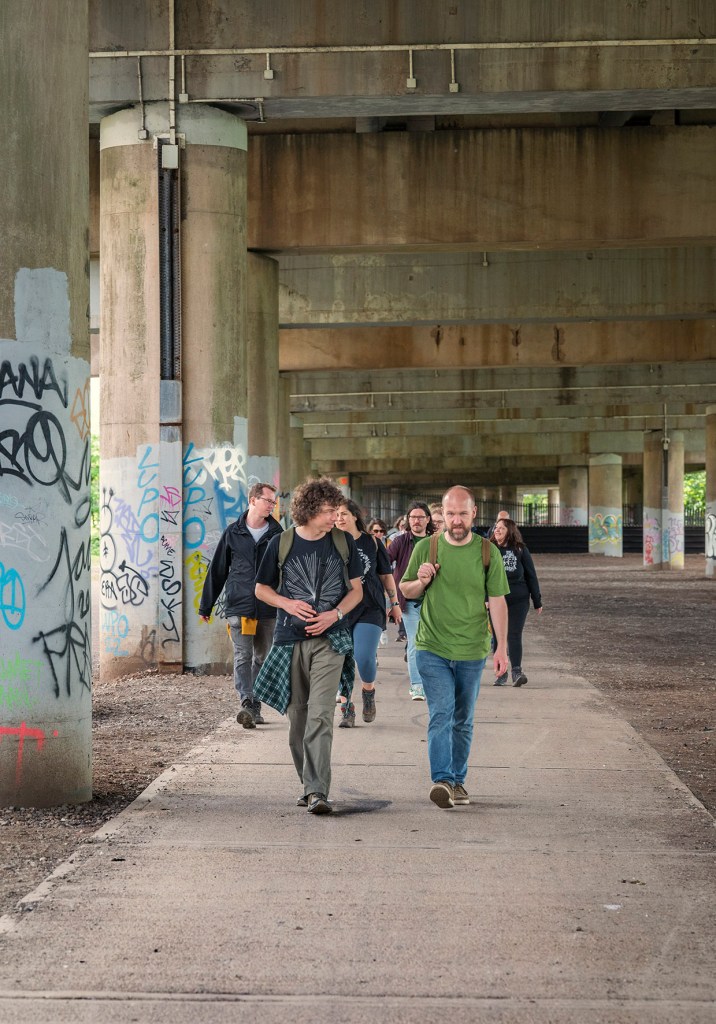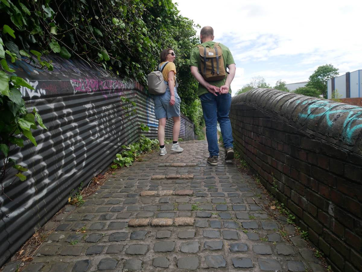 It’s half time, and this mate asks me, nodding towards the pitch, ‘What do you think then?’ I assume that, as it is my first time at his home team’s stadium, rather than get my tactical assessment of the first half action, he means what I think of the building’s aesthetics, and I point out how much I like the orange stanchion areas jutting into the sky at each corner of the ground. I remember the laughter, the incredulous faces, and the pensive look of my dad, who must have felt like he had brought a young Denton Welch to the game. The memory still frustrates (I like football; I just struggle when discussing tactics). What would those two mates of my dad think of our walk today? If I try hard, maybe I can convince myself that my walks in the last year or two have rejected the moral of this story, the idea that you’re not meant to look up at places, buildings, things at the expense of the more obvious ‘present’ action. Have they been in part exercises at re-training myself to notice what might mean more than, say, a pre-season friendly? Bit of a stretch, maybe. But, for today at least, we are just wanderers.