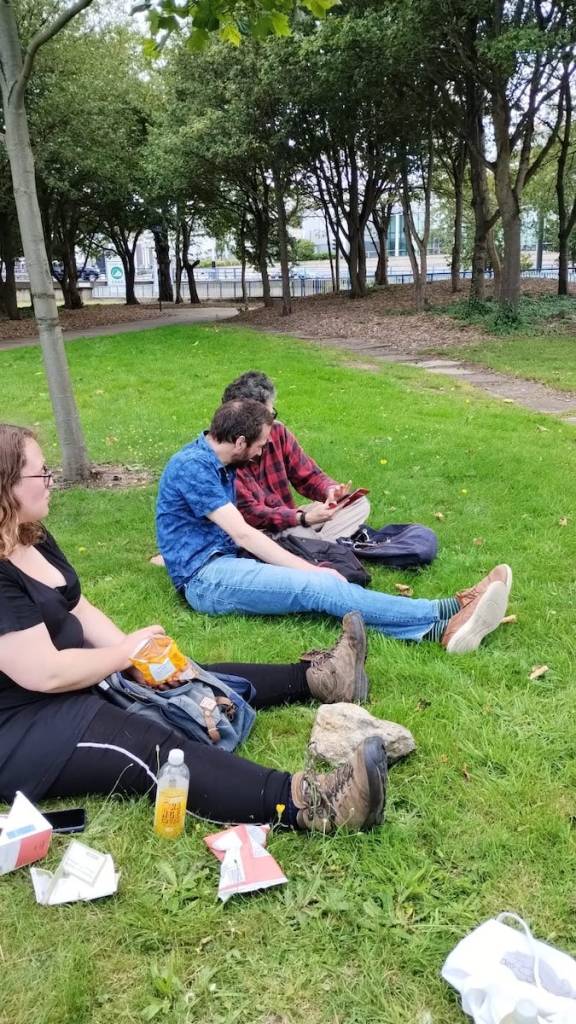 Before we join up with our main road destination for Clive’s Uber back to Birmingham, we pass through a silent industrial estate where large opaque trucks, detached from their cabs, loom out at us like alien objects from the blackness. It’s difficult to know whether this space and many others like it in the region would be any more active in tomorrow’s daylight, or we have just seen it in its permanent ghost-state. Uncertain black belt land. Static haulage, empty receptions.