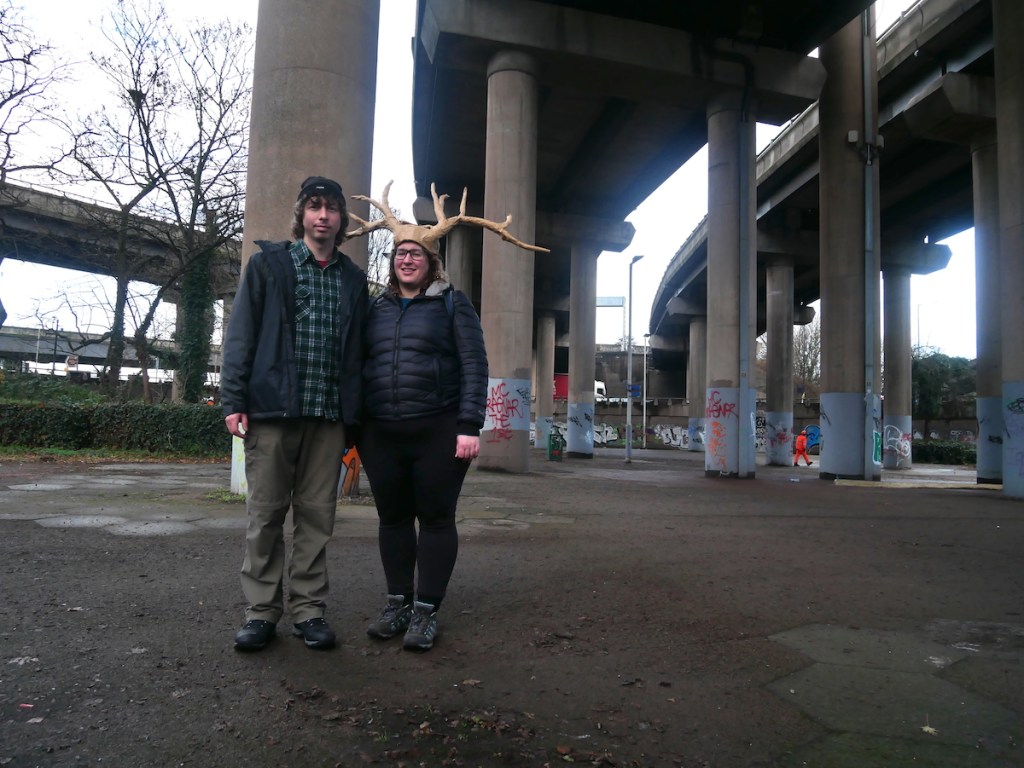 Not long after, we notice the path isn’t curving towards the road as the OS map suggests it will, and the sky grows ever darker. We give up and google only to find we have missed the racist bridge terminus after all. I want to retrace our steps, but Clive won’t have it, once again his greater confidence in the moment coming through. We plod on, frustrated and sore, hoping the path will release us further up. Eventually, and in almost total darkness, we can make out a fly tipping site that causes Clive to exclaim, with the authority of a millennial Ernest Shackleton: ‘if a car has brought that up, there must be a way down.’ Sure enough, we find here an alternative exit to the one I had planned, a spot which locals have chosen to repurpose as a dumping ground for used household items, rather than for regurgitated xenophobia.