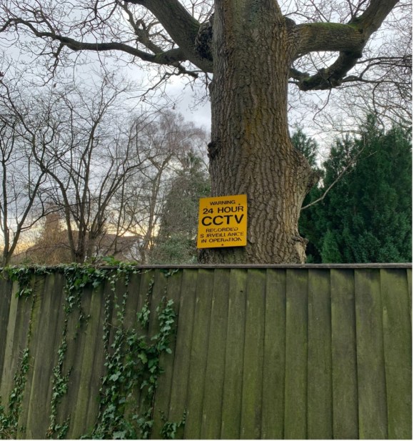 Post-Compton, at this point we come off the line and investigate Castlecroft Gardens to admire (if that is the right word) the work of Major Kenneth Hutchison Smith, who repurposed buildings in the 19th Century from other rural counties in the West Midlands in the hope of creating a utopian ‘village green’ type living quarter in this area west of the industrial city. We count less than five buildings that could remain from this period, so it is clear his project did not get very far. However, the spirit of his idea vampirically lives on amongst the current residents, who live in sizeable dwellings aping the mock Tudor ‘black and white with beams’ aesthetic of the Hutchison originals. Whilst Kenneth may have been originally seeking to set up a golden ticket salve to the realities of industrial working-class life in his lofty ambitions for Castlecroft Gardens, the present atmosphere is a long way from usefulness or industry, being one of pure preservation of exclusivity and bought privilege. Walking through, we would be disappointed not to find that nailed to various old trees are signs such as 24 HOUR CCTV RECORDED SURVEILLANCE IN OPERATION. YOUR ACTIONS ARE BEING RECORDED. In fact, an expansive balcony surveying the garden of one property finds me scanning the scene for Ralph Fiennes as Amon Goth, patrolling Castlecroft with his rifle.